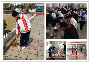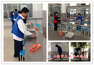 在工作岗位的每一个角落,他们的身影给老师们留下了深刻的印象。不少同学也反应第一天劳作的辛苦,回家之后各个都嚷着腰酸背痛,早早便贪睡在床上,进入梦想。平常所穿的鞋子也因为走了太多的道路开始发胀。可也正是我校“德塑人生,技行天下”的校训牵引着这群学生们通过这次难能可贵的机会为全校学生服务。渐渐地,同学们习惯了这种生活,从中学会了满足。当他们检查完宿舍回来,会开心雀跃的到休息室拿劳动周派发的包子。当清洁阿姨表扬他们的时候,便会露出幸福的笑脸……