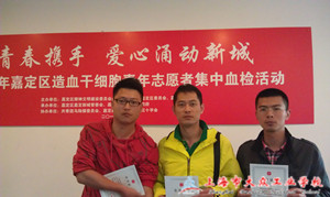 2013年5月7日上午10点,在上海市大众工业学校团委书记练子飞老师的带领下,学生科助理周洲老师和邱建兴老师驱车来到马陆镇,参加造血干细胞捐献活动。