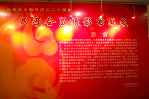 庆祝大会开始之前,会员们观摩了民进嘉定会员的摄影、书画作品展,会员杜天一、陈玲莲、张彪等老师的多幅书画及摄影作品进行了展示,