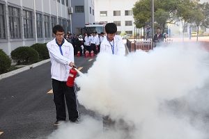 灭火小组共分为三组:第一组由食堂后勤员工、宿管员、保安员组成;第二组由教师及实训指导教师组成;第三组由来自各教学部的学生代表组成。三组人员均按照操作规范,出色地完成了灭火任务。
