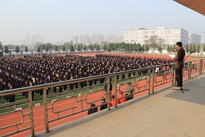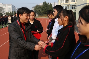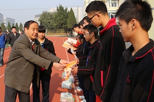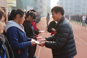 表彰会最后,陆浩勤校长提出了三点要求。第一、争做阳光学生,12月份学校将开展“阳光学生”评比活动,希望同学们积极准备,尊敬师长、友爱同学、爱护公物、遵守纪律,做到表里如一、言行如一、校内外如一的三个“如一”;第二、注重安全,进入冬季以来,天气变化无常,特别是最近的雾霾天,空气质量较差,同学们尽量减少外出及户外运动。此外还要注意保暖,防止感冒。住宿生们要遵守寝室的各项规章制度,不要把违禁物品带入寝室,同时规范使用各种生活设施。第三、做到活动有始有终,最后一个月,同学们在集队进退场、广播体操以及各项班级考评中坚持到底,高质量完成各项任务。