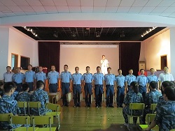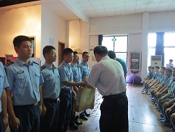高康校长首先代表大众工业学校向浏河营地全体官兵几年来对我校的支持和关心表示诚挚的谢意,并送上高温防暑物资。高校长表示,营地官兵和军训基地领导克服重重困难,为我校军训提供了优越的训练条件和后勤保障,为大众师生能够顺利完成军事训练任务奠定了坚实基础;希望大众师生和部队、基地进一步加强合作,确保最终高质量地完成各项训练工作任务。