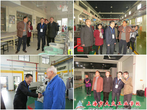 在察看期间,陆主任还来到我校具有传统文化特色的陶艺教室参观,陆主任高度赞扬我校在培养中等职业教育学生所取得的成就,赞扬学校“立足专业建设,多方向多角度培养学生的技能水平和内涵素养”,当陆主任看到我校先进的数控加工中心时,高校长向陆主任介绍,我校数控实训中心为了贴合企业生产实际,专门打造出一套与企业生产相近的柔性制造系统,在教学过程中使学生提前了解企业工作实际,提高学生的学习兴趣,增强学生就业意识,陆主任称赞道“职业教育就是学生了解企业工作的平台,在这里学生们可以从不懂到初识,再到得心应手,逐步用技术技能武装自己,实现自身对社会的价值”;在陆主任来到模具实训中心时,映入眼帘的是一番紧张工作的景象,这正是我校现代学徒制和国际模具标准化教学实施现场,德国专家正在现场指导学生操作,陆主任热情的上前和外教握手致谢,感谢外教加盟上海职教事业,为职教事业的发展贡献力量。