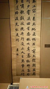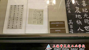 走进文物收藏的展示厅内,古琴声便奏响,随着我们走进的脚步,一盏盏玻璃柜内的灯亮起,给我们一种别具一格的灯光效果,地面上有指示前进的标志,随着它走,便看见有清代程庭鹭所写的行书扇面,那苍劲有力的字深深印在心中,除了这精致小巧的扇面还有豪放大气的行书书轴,“春江窈窈来无地,飞帆浩浩穷天际。”正是王安石所写的诗《如归亭顺风》,配上娄坚行云流水般的书法更是令人眼前一亮!,这个展馆内展示了许许多多的书法作品和山水画。除了这个展馆,走进历史展馆,映入眼帘的大幅的动画影像“疁城印迹”展现了嘉定的经济发展概况,还有海龟、梅花鹿鹿角等珍稀化石,这无一不展现了嘉定是海陆变迁的产物。以及历史中嘉定的地图展示,还有各种文书和拓片,其中就有展示吴玉章的《题“陶庵留碧”诗》的拓片和侯峒曾绝缨书等。这近八百年的历史都一一展现在我们的眼前,其中也提到了抗日战争时期的嘉定和守护西门城墙的十来岁小男孩石童子的英雄事迹,这和烈士陵园带给我的感觉完全不一样,一个是动态一个静态,展现了不一样的风格。