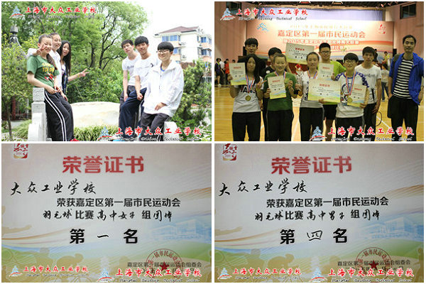 2015年5月16日星期六,是嘉定区第一届市民运动会(青少年组)暨2015年嘉定区学生阳光体育大联赛羽毛球比赛日,学生积极报名参赛,经过仔细斟酌,我校派出九名学生代表学校出战高中组男女团体赛,由张利华老师带队,女团阵容:陈文文、李小春、王能波、李美霞;男团阵容:唐炜、蒋优杰、胡志伟、李昀、陈黄宇。经过男女团队员顽强的拼搏,男团取得第四名的战绩,女团更是取得了第一名。女团的第一名来之不易,其中的小插曲更是让我感动。由于陈文文的鞋子太滑,李小春主动脱下自己的鞋子给自己的队友,等自己上场时再换回来。分享鞋子、分享拍子、分享食物、分享胜利后的喜悦……分享,让我们这个团队更融洽。