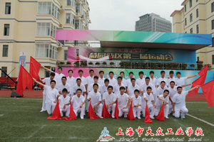 一遍遍辛苦的训练终于换来了在开幕式上,白衣红旗的同学们表演的大型团体操《成业乐园》以恢弘的气势、壮丽的场面展示了青年人的昂扬风貌,由于同学们的突出表现,开幕式后得到了菊园新区领导的高度赞扬,同学们用实际行动为学校争得了荣誉!