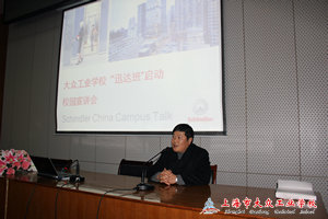 会议由我校朱强主任主持,朱主任向在座师生介绍了学校与迅达电梯今后的合作情况,并就组建“迅达电梯班”的讯息与在场师生做了传达,同时也将电梯行业的发展前景向同学们进行了介绍。