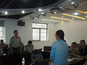 8月27日下午一点整,大众工业学校2013年军训工作会议在阶梯教室召开,各军训工作小组成员,13级全体军训班级班主任以及各教学部工作人员参加会议,陆浩勤副校长出席会议并发表重要讲话。会议由学生处主任金玉林主持召开。会上,学生处主任金玉林对2013-2014学年军训工作进行了布置。副校长陆浩勤对军训会议做总结并发表讲话。他表示,今天召开会议的主要精神是统一思想,明确目标。希望本次工作军训工作小组能够团结一致,克服困难,圆满完成工作。陆浩勤表示,军训是新生入学教育的第一课,班主任老师在整个活动期间,要以身作则,做好前期通知告知工作。各教学部要求召开一次军训工作会议,在学校的基本要求框架下,结合各自特点,求创新求突破,形成各班之间比学赶超的良好竞争氛围。班主任要守在一线,全程跟训,队伍在哪里,老师就要出现在哪里。同时,班主任要充分利用军训这段时间,摸清学生的思想情况、身体情况,有针对性地做好学生的思想工作,主动配合教官组织好军训。