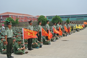 动员会伴随着雄壮的国歌声拉开帷幕。陆浩勤副校长作重要讲话。他首先代表学校向承训官兵表示欢迎与问候。他在讲话中说道,大众工业学校是一所久负盛名的中职校,04年被评为国家级重点中专,今年暑期被教育部成功评定为首批国家中等职业教育改革发展示范校,迈入国家职业教育的重点发展核心区,希望新入学的同学们以学校为荣,同时通过自己的努力继续创造大众的辉煌。