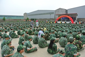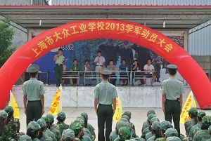 2013年8月30日下午2点整,上海市大众工业学校2013学年学生军训动员大会在奉贤蓝箭军训营地隆重召开。副校长陆浩勤,学生处主任金玉林,机电、汽修、文科、电气教学部主任等在主席台就坐,各班班主任以及奉贤军训基地900余位学生出席本次动员大会。