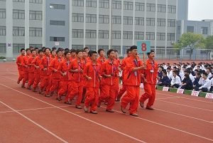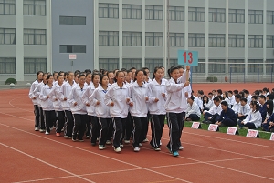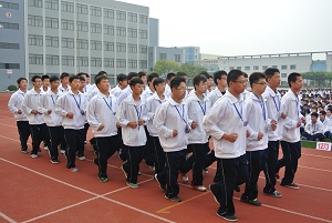 随后,陆浩勤副校长宣布集队展示评比活动开始,17个班级在统一指挥下,依次入场,整齐的步伐、飒爽的英姿,给全校师生带来了最为热切的开场。同学们精神饱满,斗志昂扬,展现出了良好的精神面貌,“大众数控,服务大众”,“加强文化,实现理想”,“机电机电,和谐奋进”,“汽修专业,勇往直前”,“把握信息,把握未来”,“文科文科,天天向上”,“大众电气,团结奋进”……各班级学生喊着本部门的口号,依次从主席台下通过,赢得在场师生热烈的掌声。
