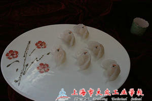 在展厅门口,几位穿着粉红色礼服的服务生正在接待着来参观的师生,一进大厅,精致的点心、冷拼等作品,犹如艺术品般被错落有致地摆放着。一件件作品栩栩如生,活灵活现,同学们忍不住拿出手中的相机留下这美好的瞬间。尤其是那两只小鸡,鹅黄色的身段,圆润的身躯,惟妙惟肖,似乎要从桌子上走下来。高康校长也不断赞叹,鼓励学生说:“以后这样的活动会多多举办,学校要建立各种各样的平台让学生尽情发挥自己的才能,今天烹饪专业的同学带了一个好头,让全校的师生更好地领略到了现代大厨的风采。”这无疑是给烹饪专业的同学们很大的鼓励。随着社会的发展,厨师在社会上的地位越来越高,但还是会有人对厨师这个职业有偏见,校长的话,坚定了同学们踏上这条路的决心与信念。相信他们在未来的路上,可以带着校长的赞美,同学们的鼓励,老师的认可,自信满满、从从容容地展示自我,快乐生活。