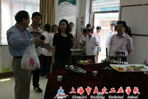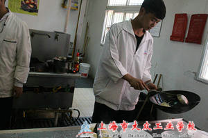 最劲爆的要数烹饪实训室了,五六个厨师正在热火朝天地炒菜,他们的脸上露出了甜蜜的笑容,是自信,更是淡定,因为有那么多的师生来光顾,他们已经应接不暇了。从备料、切丝,掌勺,都由同学们亲自上马。看到他们这么娴熟的刀工,同学们也跃跃欲试,当自己真的拿刀,动作的笨拙,缓慢,才晓得术业有专攻这句话的重量,不得不佩服他们的确是名副其实的厨师。时间已经延续了一个小时,但是来参观的同学还是络绎不绝……