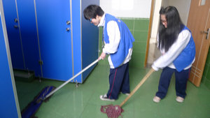 礼拜一清晨,每一位同学都依时来到了指定的工作岗位,准备投入一天的辛勤劳动。校园内,随处可见穿着各色马甲的身影。他们运用手中的劳动工具,挥洒着汗水,只为可以给我们的校园带来整洁。最为辛苦的要数那些“推宝马”的同学了,尽管天气十分恶劣,他们依旧始终如一地坚守岗位。无论是晴空高照抑或是阴雨绵绵,总能看到他们挥动手中的扫帚,扫着校园各处的落叶垃圾。