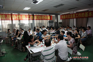全体干部分成 6个小组,6-8人围座,一个个如认真的学生、虔诚的学徒,跟随讲师的引导,全身心投入地训练中。正如高康校长在培训前的讲话中所说,这个培训过程是高雅的,其中的理念和内容是每个人的发展所必需的。