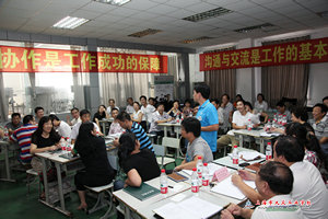 只见机电培训中心工艺室里悬挂着的条幅上,醒目地写着“团结与协作是工作成功的保障”、“沟通与交流是工作的基本能力”,本次培训的主题一览无余。而此次量身定做的培训内容涉及包括五个项目,分别是“自信:能将复杂的事情简单化”、“态度控制:赢得合作”、“人际关系/沟通:最有价值的能力”、“沟通:练出来的Skill”、“领导力:愿景/整合”。