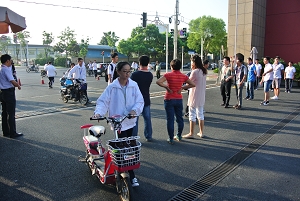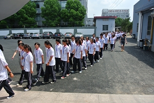 中午进餐期间,校长高康、副校长陆浩勤、学生处全体工作人员、驻校教官分站在教学楼通往学生食堂的交通要道上,监督就餐队伍的排队情况并维持现场秩序。绝大多数班级均能按照规定的行进路线,有序进入食堂就餐。