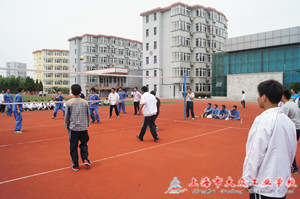 排球比赛是集体比赛项目,除发球外,都是在集体配合中进行的。没有严密的集体配合,再好的个人技术也难以发挥,更无法发挥战术的作用。水平越高的队,集体配合就越严密。也正是这种需要集体配合的球类活动,成了提升班级团结性的有效途径。整个排球比赛的开展,学校成了校园排球热的盛行之地。如今,学校排球场上永远也不缺少队员,而两旁的场外也永远不缺少观众。篮球赛在每一个学期都是大众工业学校学生热爱的体育活动,学生们的关注度也是异常地高。在第3教学楼前的排球赛场上,体育健儿们团结奋进,表现出色。