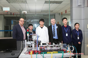 法国巴黎纳达职业高中与上海市行政管理学校正开展校际合作交流,此次前来我校考察学习主要了解中国中职校机械、机电相关专业的教学教育。我校实训中心主任徐剑老师为其择要讲解计算机实训中心、数控实训中心、机电实训中心、电气实训中心、模具实训中心的相关情况。来访的5位法国老师中,有2位分别是工业自动化专业教师、工业设备检修专业老师。参观途中,他们详细了解实训设施设备品牌、型号、使用反馈,对实训教学资源的网络化管理、AVG运输小车、基于学生安全防护的机床改造赞叹不已,对校企产学研的产品、作品、参与世界职业技能大赛成绩赞口不绝。一行手机、相机随拍不停,遇到学生、老师,主动邀请开心地合影。
