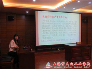 在模拟法庭环节中,由161101班的14位同学客串审判长、审判员、书记员、公诉人、原告以及被告等角色,为同学们还原真实模拟法庭的场景。最后,“审判员”还对同学们进行了法制教育。她说,虽然现在法庭做出了公正的刑事处罚。作为一名在校学生,首先应该有法制意识。不要以为自己离法律很远,在可能的情况下,要多学习、多了解一些基本法律。在日常生活中,要时时刻刻在头脑中绷紧法律这根弦,做每一件事之前,要经常想想自己的行为是否正确,是否是法律允许的,会有什么样的法律后果。有了法律意识,才会避免因为一时冲动而触犯法律。